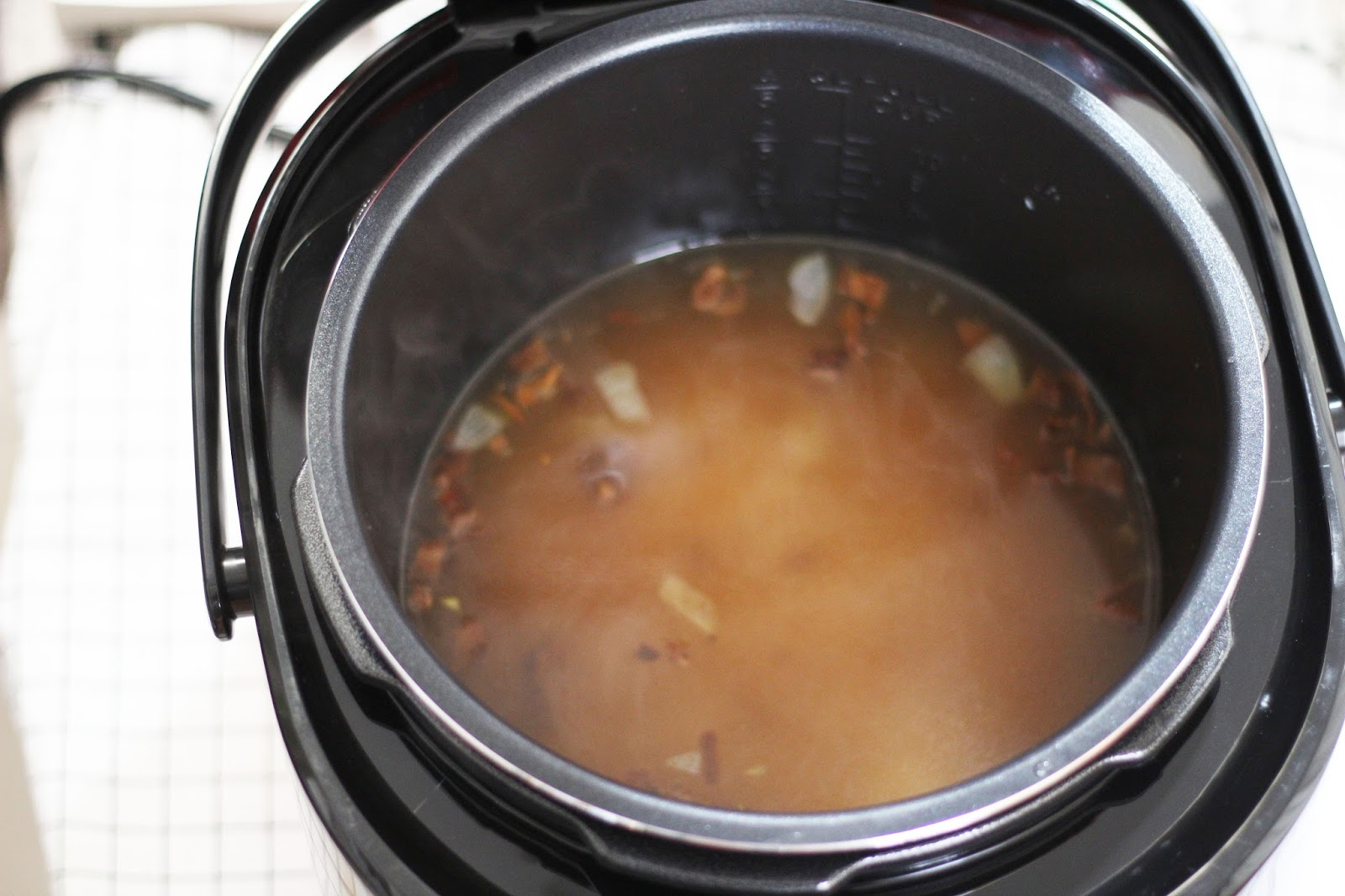 ➼加熱至冒煙之後再大約10分鐘(如果不先開蓋煮到時候會酒氣逼人)