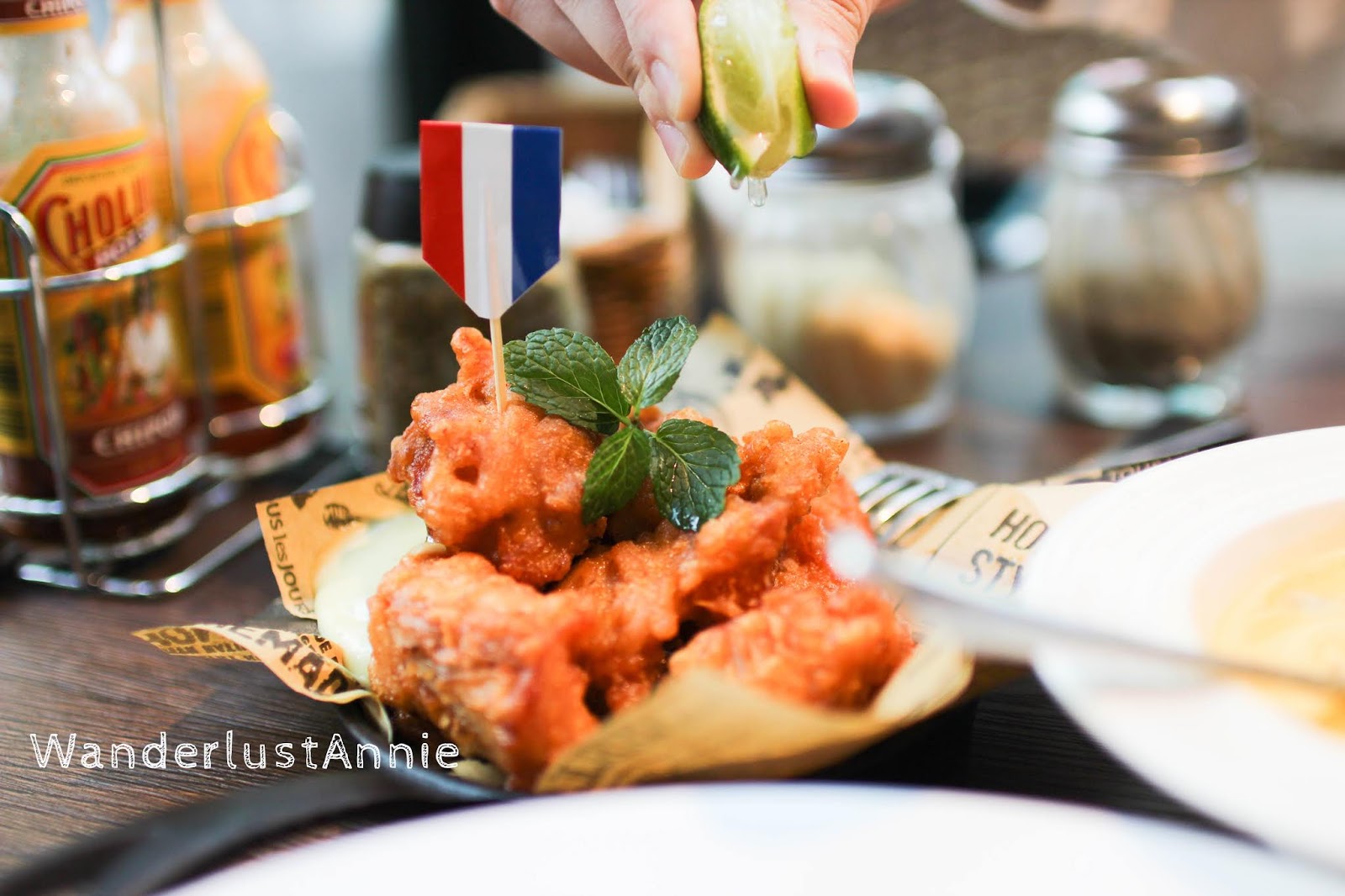 這樣香氣逼人的炸雞塊居然只要100塊錢,老闆真是太佛心了,如果兩人分享的話這邊的配菜真的可以多點幾道,分量不會太多太少剛剛好呢!!!擠上萊姆汁,整個很清爽喔!!