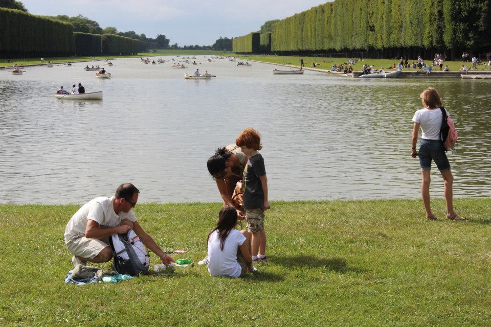 學著這些人找片空地做了下來,享受這這美麗天空帶來的恩賜,讚嘆前方的人工運河,想起了瑪麗安東尼電影裡在凡爾賽宮花園追逐嬉戲與划船的場景.