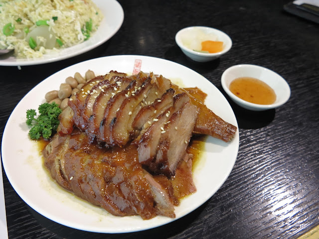 然後是我最愛之一的叉燒燒鴨拼盤,最愛的就是燒鴨的皮,雖然有點油,但就是喜歡那油滋滋的在嘴裡劃開的味道喔!尤其是搭上他附上的梅子沾醬,整體清爽許多