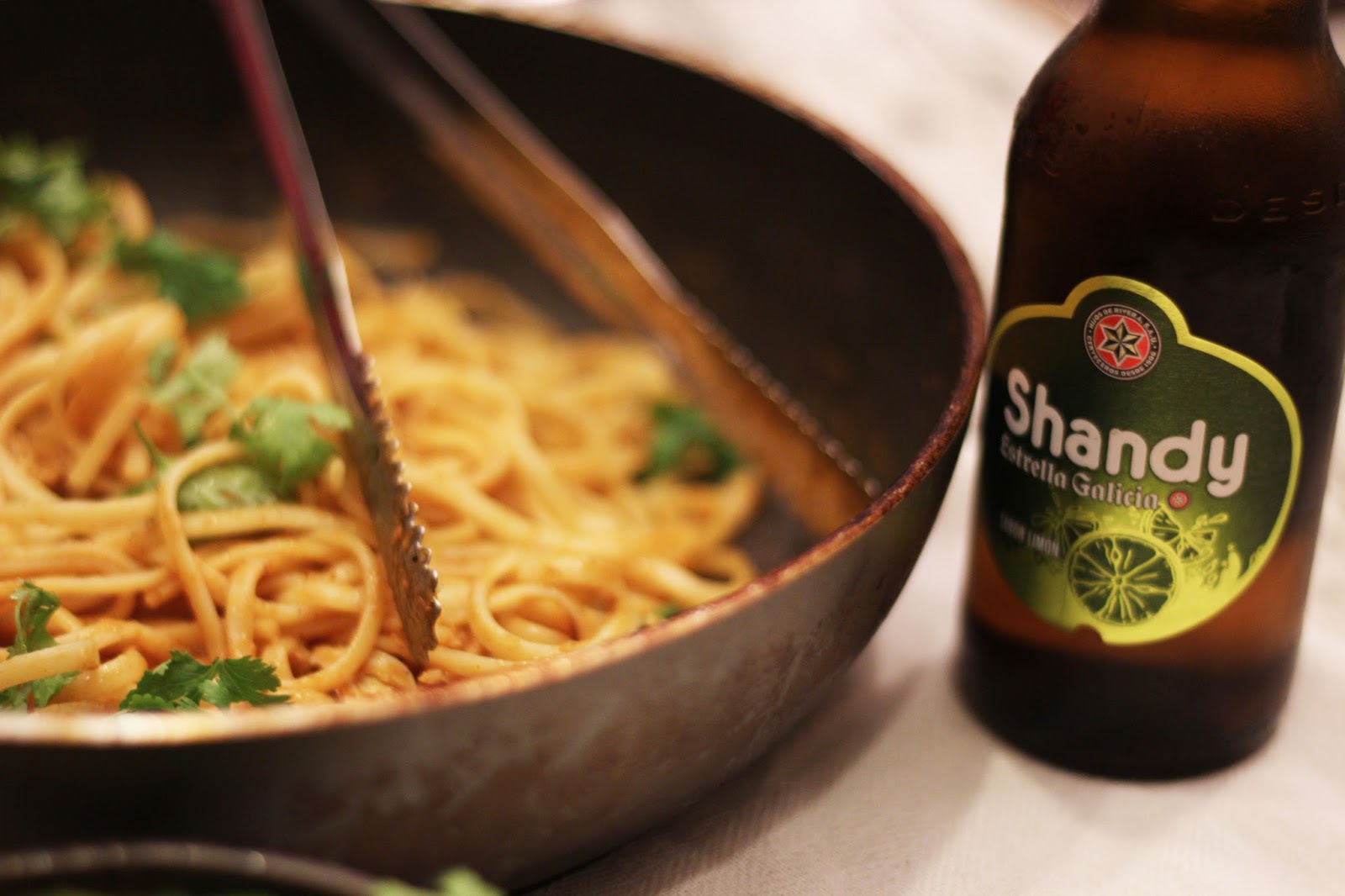 因為沒什麼辣味帶有椰奶香,搭配清爽低酒精濃度的西班牙Estrella Galicia六芒星檸檬啤酒剛剛好呢!我一開始壓根沒注意酒精濃度,只覺得檸檬口味好像跟奶香很搭配,因為感覺比較清爽,結果容易臉紅的我喝完一瓶還覺得恩~哪裡怪怪的時候才發現酒精濃度只有0.9%.