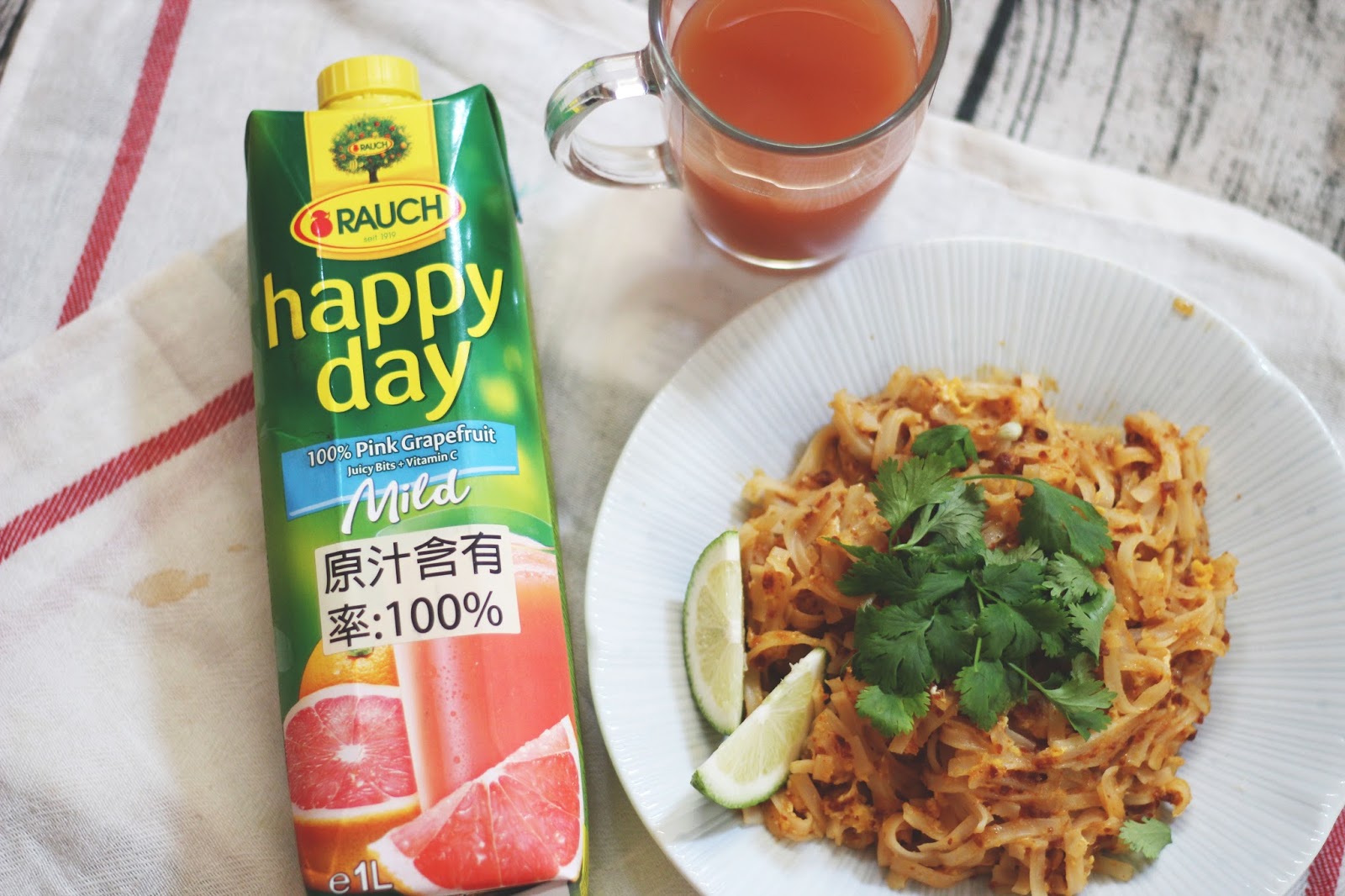 這次還找到了我好久沒喝到的果汁,奧地利RAUCH好喝葡萄柚汁我一直記得我以前絕對有喝過,偏酸微苦的原汁口感配合清爽的泰式炒河粉很適合喔!(完了!調酒師職業病上身,一定要講求味道的搭配!)
